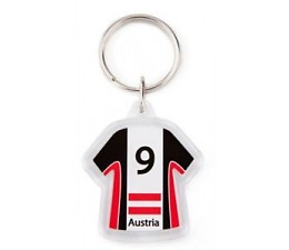 Plastic sleutelhanger in de vorm van een T-shirt. Full colour bedrukking aan beide zijde.
